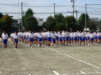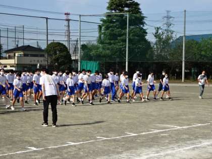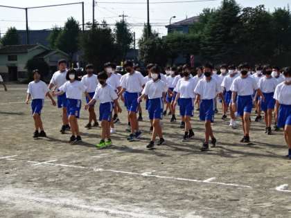 全校練習の様子です。全校生徒が一堂に会するのは、なんと1年8ヶ月ぶりです!
