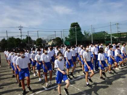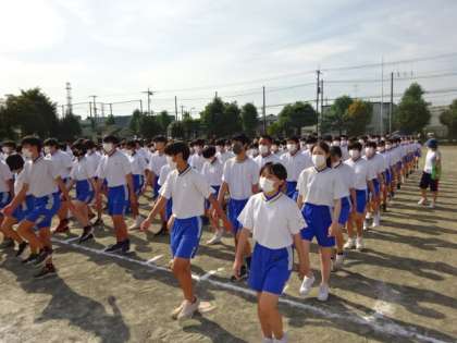 全校練習の様子です。全校生徒が一堂に会するのは、なんと1年8ヶ月ぶりです!
