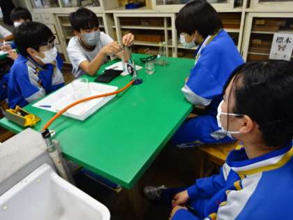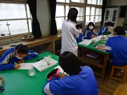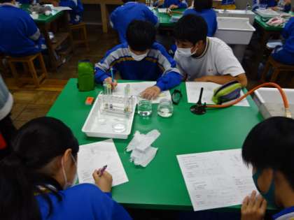 2年4組、理科。「デンプンに対するだ液のはたらきを調べる実験」