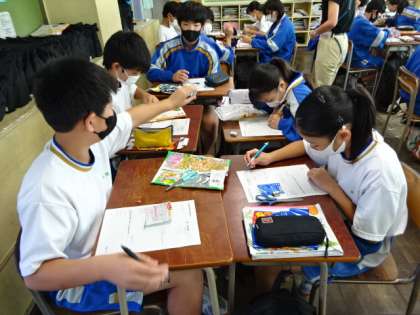 1年3組、家庭科。加工食品の表示を読みとろう。