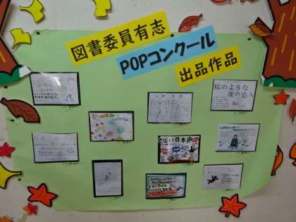 図書委員有志のPOPコンクール出品作品です。図書室前に掲示してあります。