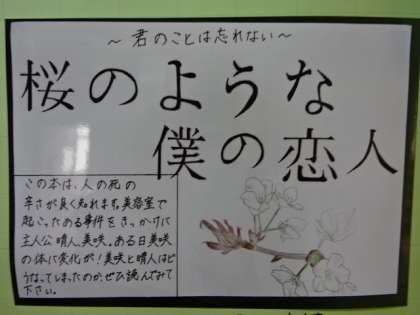 図書委員有志のPOPコンクール出品作品です。図書室前に掲示してあります。
