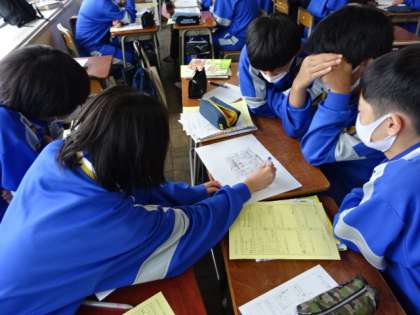 2年2組、家庭科。「災害に備えた住まいを考えよう」