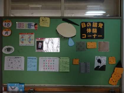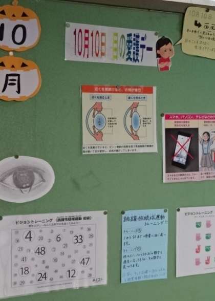 10月10日の目の愛護デーに因み、掲示してあります。体験してみましたか?