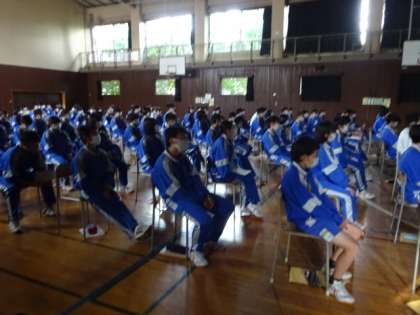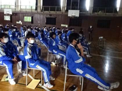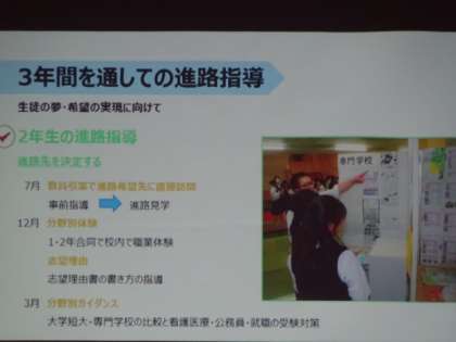 2年生の「上級学校講話」の様子です。今日は都立高校の先生がいらっしゃいました。