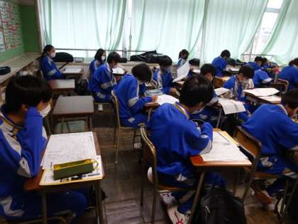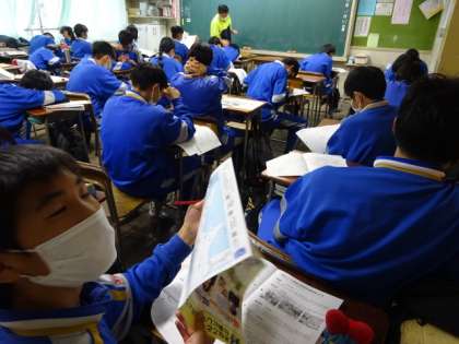 2年4組、学級活動。上級学校について学んでいます。