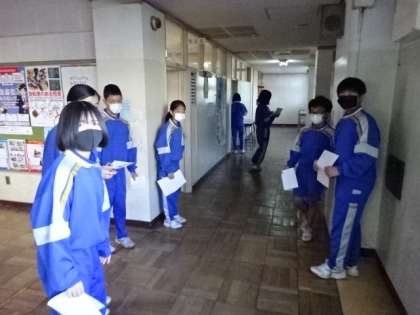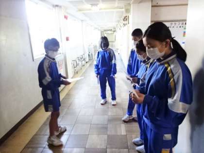 今朝は11月の生徒会朝礼でした。放送で行いました。