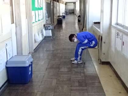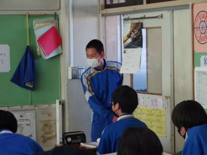 3年1組、国語。面接型「おくの細道」暗唱テスト。