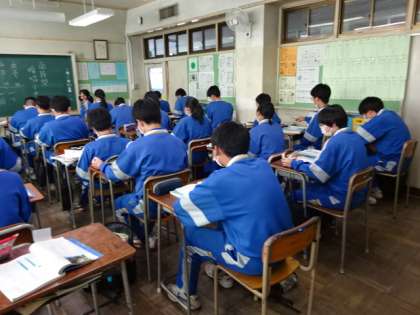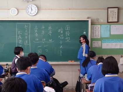 3年3組、国語。面接型「おくの細道」暗唱テスト。