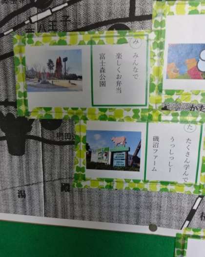 1年生の廊下に掲示されている「みんなで作ろう! 八王子かるた」です。26日の校外学習に向けた取り組みです。