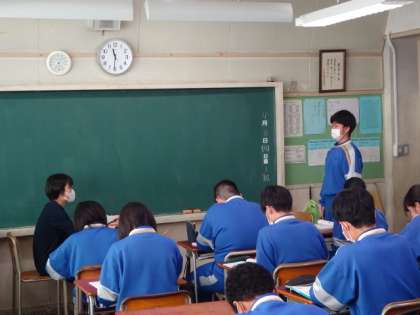 3年3組、国語。面接型「おくの細道」暗唱テスト。