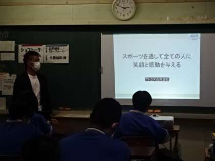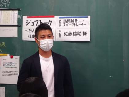 八王子青年会議所の講師による、2年生ジョブトークの2回目です。2組。スポーツトレーナー。