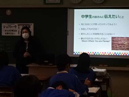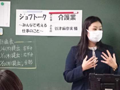八王子青年会議所の講師による、2年生ジョブトークの2回目です。3組。介護業。