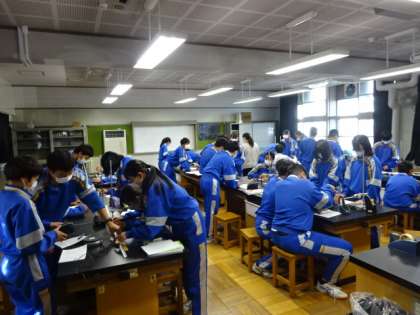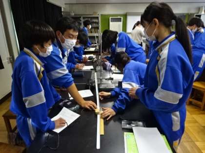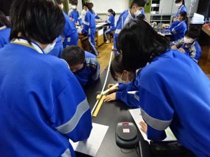 3年3組、理科。「物体のもつエネルギーの大きさと物体の高さや質量との関係を調べる」