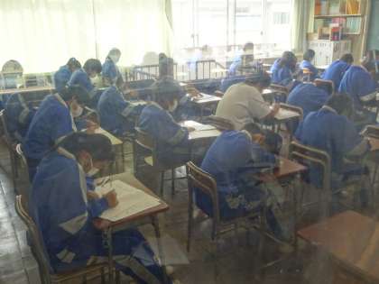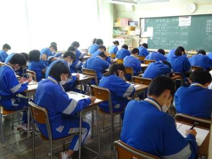 今日は2日目です。2時間目の理科のテストの様子です。2年生。