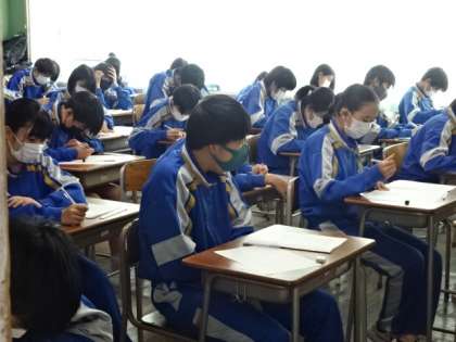 今日は2日目です。2時間目の理科のテストの様子です。2年生。