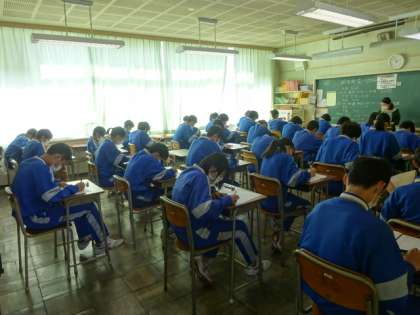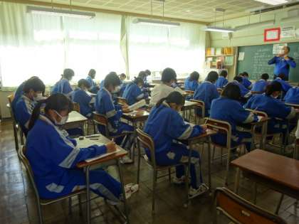 今日は期末考査最終日です。9教科最後のテストは音楽です。2年生。