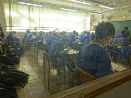 今日は期末考査最終日です。9教科最後のテストは音楽です。3年生。