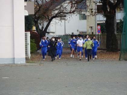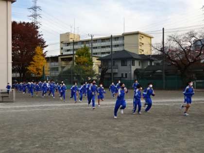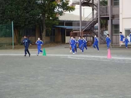 地震想定の避難訓練です。約2年ぶりに、校庭に全員が避難しました。