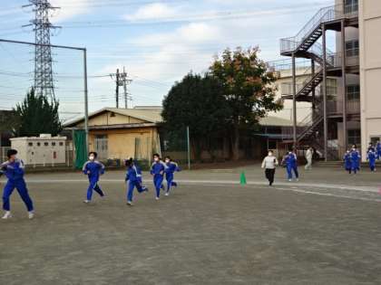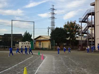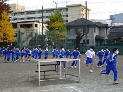 地震想定の避難訓練です。約2年ぶりに、校庭に全員が避難しました。