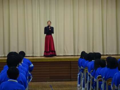 今年度の「道徳授業地区公開講座」は元宝塚雪組の沙月愛奈さんに講演していただきました。お話の中の「小さな花をたくさん咲かせる努力が大切」「自分の考えで未来は変わる」「チャレンジしよう」という言葉は、とても印象深かったようです。ありがとうございました。2年生の様子です。