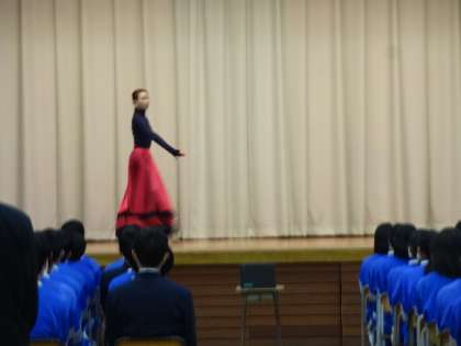 今年度の「道徳授業地区公開講座」は元宝塚雪組の沙月愛奈さんに講演していただきました。お話の中の「小さな花をたくさん咲かせる努力が大切」「自分の考えで未来は変わる」「チャレンジしよう」という言葉は、とても印象深かったようです。ありがとうございました。3年生の様子です