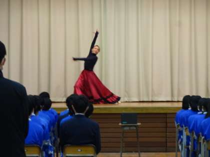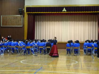 今年度の「道徳授業地区公開講座」は元宝塚雪組の沙月愛奈さんに講演していただきました。お話の中の「小さな花をたくさん咲かせる努力が大切」「自分の考えで未来は変わる」「チャレンジしよう」という言葉は、とても印象深かったようです。ありがとうございました。3年生の様子です