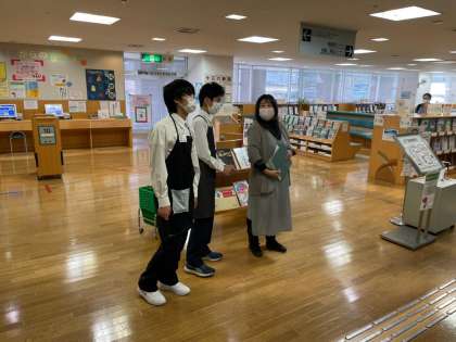 11月24日・25日に行った、2年7組生徒の職場体験の様子です。生涯学習センター図書館で体験しました。