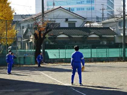 3年3・4組、体育男子。ソフトボール。