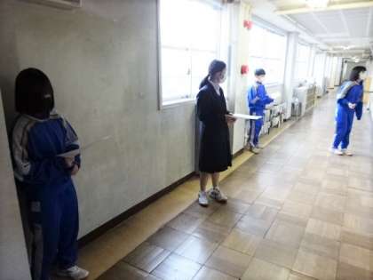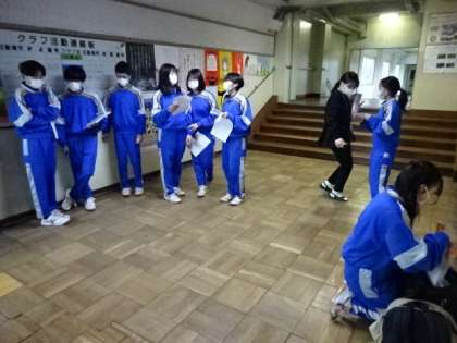 今朝の生徒会朝礼です。今回までは放送で行いました。