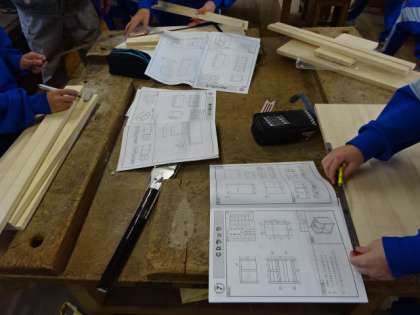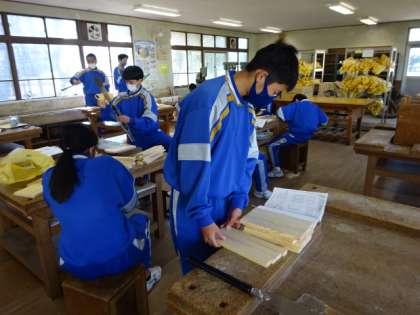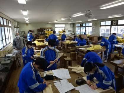 1年5組、技術。木材加工。