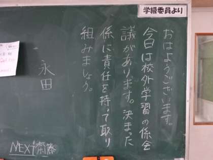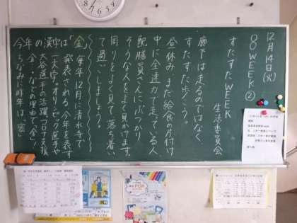 学年掲示板。すたすたweek(1年)校外学習係会議(2年)今年の漢字(3年)