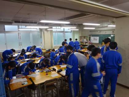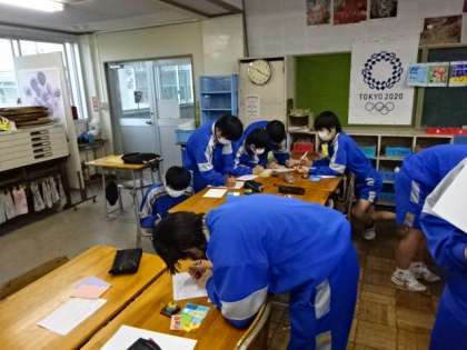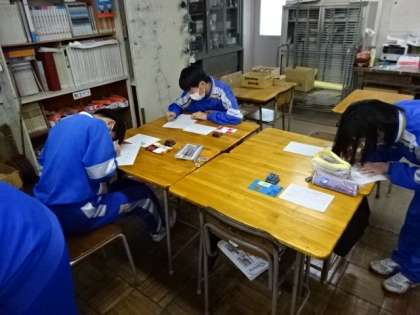 2年1組、美術。和菓子鑑賞会。他の人の作品から良い技術やアイデアを学ぼう!