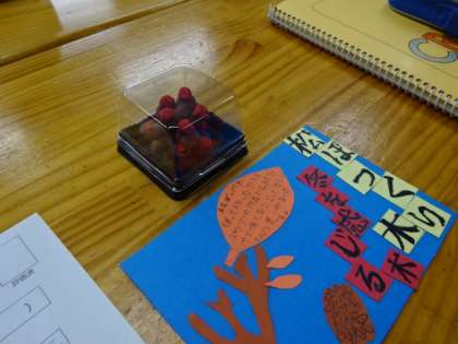 2年1組、美術。和菓子鑑賞会。他の人の作品から良い技術やアイデアを学ぼう!