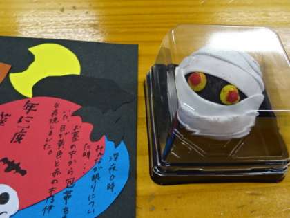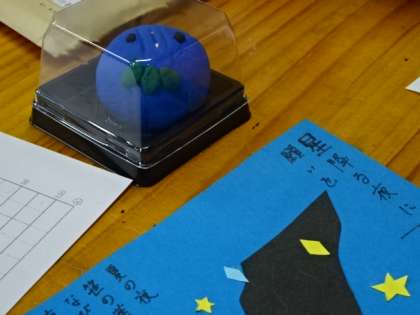 2年2組、美術。和菓子鑑賞会。他の人の作品から良い技術やアイデアを学ぼう!