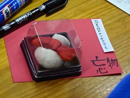 2年2組、美術。和菓子鑑賞会。他の人の作品から良い技術やアイデアを学ぼう!