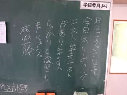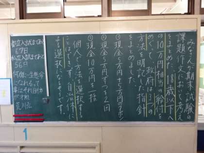 学年掲示板。学級討議(1年)リーディングテスト・単元テスト(2年)10万円(3年)