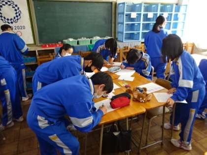 2年4組、美術。和菓子鑑賞会。他の人の作品から良い技術やアイデアを学ぼう!