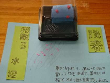 2年4組、美術。和菓子鑑賞会。他の人の作品から良い技術やアイデアを学ぼう!