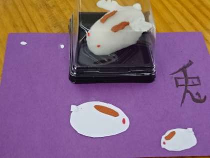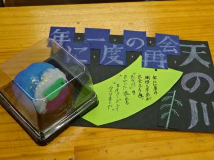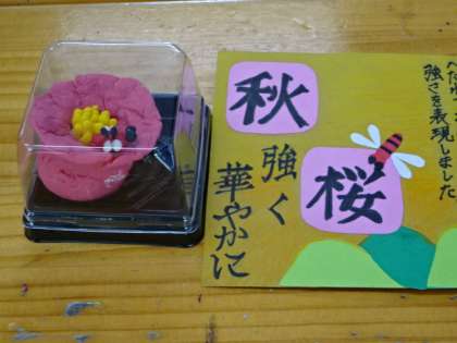 2年4組、美術。和菓子鑑賞会。他の人の作品から良い技術やアイデアを学ぼう!