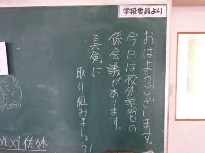 学年掲示板。校外学習係会議(2年)提出書類の管理(3年)。