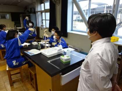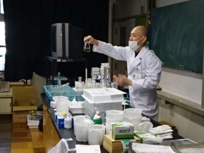 今日と明日、東京工業高等専門学校の先生方が、1年生の理科の出前授業を行ってくださいます。内容は「実験廃水を化学の力で浄化してみよう-液体に含まれる有害物を化学の力で取り除く-」