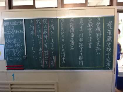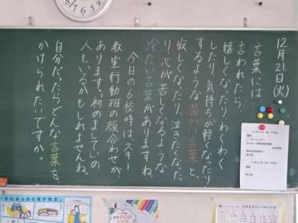 学年掲示板。温かい言葉冷たい言葉(1年)調べ学習(2年)都立推薦受検予定者へ(3年)