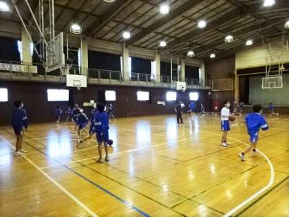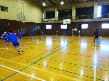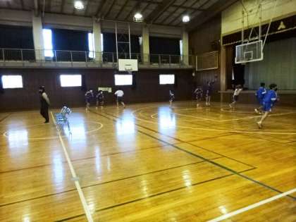 1年3・4組、体育男子。バスケットボール。シュート練習です。