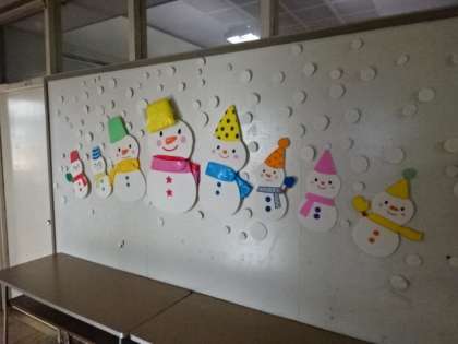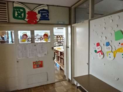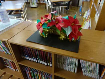 POPを見ながら階段を上がると雪だるま。図書室に入ればChristmas。