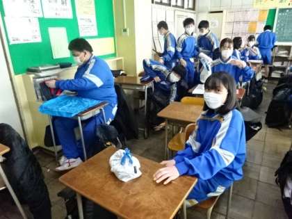 2年生の校外学習は延期になりました。今日は給食がありません。久しぶりのお弁当です。保護者のみなさん、ご準備ありがとうございました。2組。