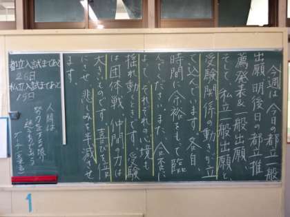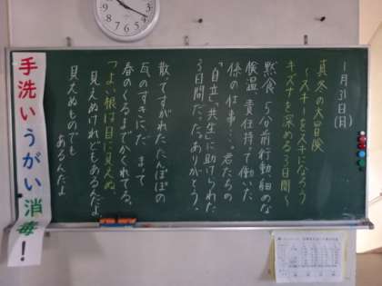 学年掲示板。つよい根は目に見えぬ(1年)仲間の力は大きい(3年)