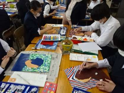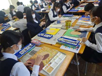 2年1組、美術。「名画で描く自画像」