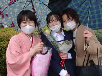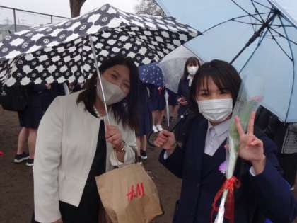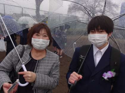 卒業おめでとう。石川公園で記念写真。保護者と一緒!