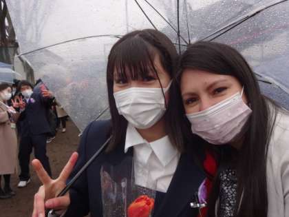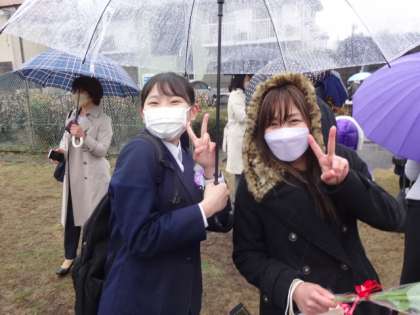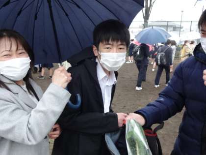 卒業おめでとう。石川公園で記念写真。保護者と一緒!